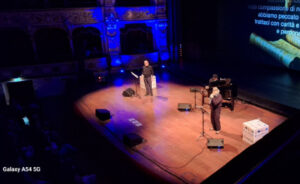 Spettacolo a momenti ironico e in altri drammatico, come del resto il testo cita, e con, proiettate su uno schermo alle spalle dei nostri, i video di Elisa Savi, e i disegni di sabbia, spettacolari, realizzati da Gabriella Compagnone: immagini in movimento che hanno visivamente accompagnato tutta la narrazione.