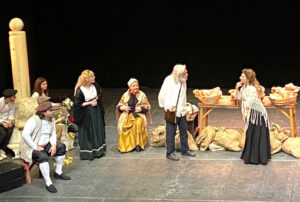 Notevole il suo intervento canoro, incitata dalle amiche dell’antico vicolo, a cantare una ninna nanna. Soprano professionista in veste di attrice, è stata la sorpresa al pubblico dello spettacolo.