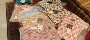 Elegantemente accolti da Valentina Ceci nel salone ottocentesco e curato degli arredi d’epoca, esposti al pubblico, abiti di tagli essenziali e comodi di tessuti quali sete e cotoni di produzioni manifatturiere a telaio.
