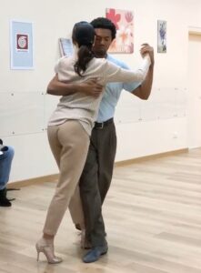 Le coppie presenti allo stage tenuto dai maestri, ospiti in una nota scuola di ballo di Bari, hanno assistito all’evento letterario organizzato da Rossana Tursi, docente di tango e organizzatrice dell’evento.
