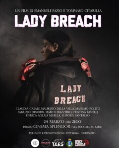 Il giorno 24 Marzo 2025, alle ore 21:00 presso il Cinema Splendor a Bari, sarà proiettato per la primissima volta nel territorio nazionale, il lungometraggio LADY BREACH.