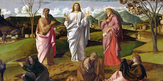 Siamo lì, sospesi tra terra e cielo, assieme a Pietro, Giacomo e Giovanni. È il momento in cui la divinità di Cristo si svela in tutta la sua potenza, nella scena della Trasfigurazione.