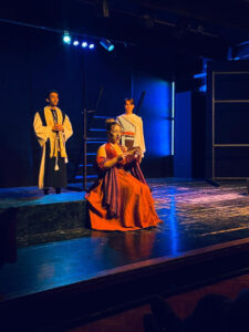 La regia sceglie un impianto scenico essenziale che esalta la forza del testo e la carica espressiva degli attori. Un’ambientazione suggestiva ed evocativa che valorizza le varie scene, dalla locanda alla battaglia, fino al toccante epilogo nel convento.