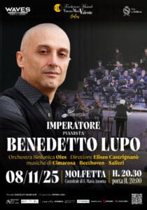Benedetto Lupo suona il celebre «Imperatore» di Beethoven e un Salieri poco noto, nella Cattedrale di Molfetta, dove il pianista barese è atteso con l’Orchestra Oles diretta da Eliseo Castrignanò per un appuntamento di prestigio della stagione «Waves 25» ideata da Pietro Laera per la Fondazione Musicale Valente presieduta da Marcello Carabellese.