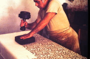 Custode di questa tradizione è la Stamperia Pascucci di Gambettola, attiva da oltre due secoli. Nel tempo il laboratorio ha ampliato la propria produzione a tessuti d’arredo, tovaglie e tende da spiaggia, continuando a utilizzare la stampa a ruggine e conservando un patrimonio di oltre 6.000 stampi in legno.
