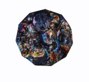 Perciò I miei astratti rispettano determinate forme: poligoni regolari con lati dispari (triangolo, pentagono, eptagono…. endecagono) laddove accentuo la prevalenza dell’elemento maschile; cerchi, laddove è prevalente il femminino.