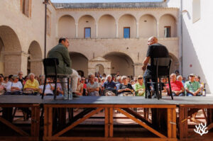 Si è conclusa domenica 21 settembre, presso il Chiostro della Biblioteca Comunale “R. Bonghi” di Lucera, la XVIII edizione del Festival della Letteratura Mediterranea, con la conversazione scenica “La cura dello sguardo” che ha visto protagonista uno dei volti più autorevoli del giornalismo italiano, Domenico Iannacone, in dialogo con Felice Sblendorio, per la regia di Cosimo Severo e con la produzione della Compagnia Bottega degli Apocrifi.
