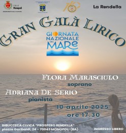 Il 10 aprile presso la Biblioteca Civica “Prospero Rendella” di Monopoli si è svolto il Gran Galà Lirico con il soprano Flora Marasciulo e la valente pianista Adriana De Serio.
