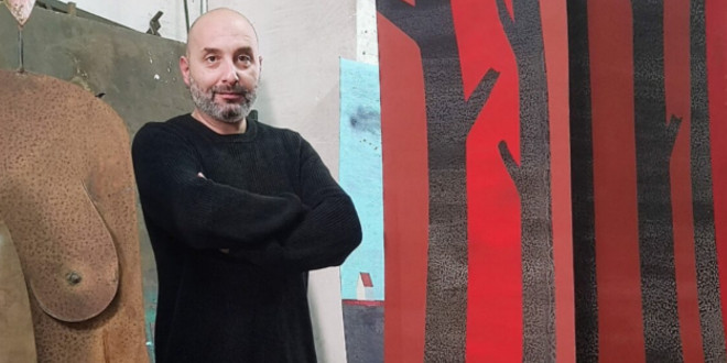 Utilizzando lamiera ferrosa come materiale principale, l’artista crea opere che raccontano la continua ossidazione della natura, simbolo di un cambiamento in corso, ma anche di una possibilità di rinascita.
