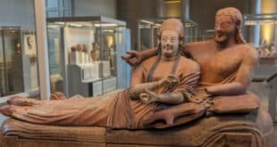 di Giovanni Francesco Cicchitti. Nel silenzio di una sala del Louvre, due sposi giacciono distesi da secoli, immersi in un banchetto eterno. Lo sposo, sorridente, è raffigurato mentre è sdraiato su un triclinio: il gomito sinistro appoggiato su otri di vino, simbolo del consumo durante i conviti, e le gambe …