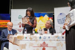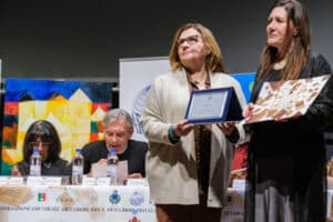 Il Presidente Rosanna Palmisano premia l’Istituto Pertini Anelli -Pinto di Turi prof.ssa Annarita Valentini e la Direttrice della Casa Circondariale di Turi Nicoletta Siliberti per aver partecipato con una sezione speciale.