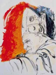 Tecnica Espressiva: l’artista impiega gesti veloci e pennellate essenziali per catturare l’essenza emotiva del soggetto. I colori vivaci e le composizioni dinamiche riflettono lo stato d’animo e la spiritualità del Papa.