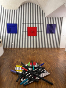 Nel rigore delle strutture, nella libertà dell’invenzione formale, nella tensione verso la tridimensionalità e nel dialogo costante con lo spazio circostante del frantoio, la mostra mette in scena un confronto vitale, dove la geometria si fa linguaggio e forza plastica.
