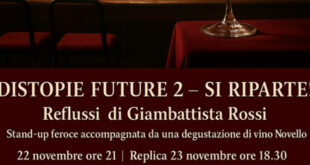 Reflussi di Giambattista Rossi Stand-up feroce accompagnata da una degustazione di vino Novello Tra risate e riflessioni, lo spettacolo esplora pregiudizi, educazione e psicoterapia. Con ironia tagliente e un sorriso sferzante, ci costringe a guardarci dentro, a riconoscere le ipocrisie quotidiane, e a interrogarsi su come costruire un futuro più …