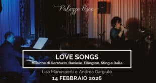 Sabato 14 febbraio 2026, h. 21:00 Palazzo Pesce presenta Love songs Musiche di Gershwin, Daniele, Ellington, Sting e Dalla con Lisa Manosperti voce e Andrea Gargiulo pianoforte. Un progetto che racconta l’amore in tutte le sue facce: amore appassionato, amore folle, amore ebbro, amore disperato. E in tutte le declinazioni in …
