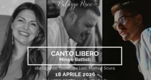 Sabato 18 aprile 2026, h. 21:00 Sala Etrusca di Palazzo Pesce Mola di Bari presenta “Canto libero Mina e Battisti” insieme a Ida Gigante voce, Giuseppe Leo pianoforte e Matteo Scura batteria Mina considerata una delle voci più iconiche della musica italiana che, con la sua capacità di interpretare una vasta gamma di …