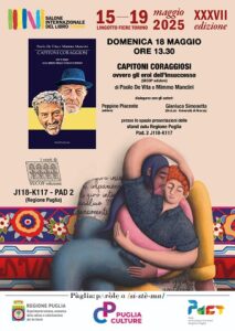 Il ciclo di eventi SECOP si chiuderà domenica 18 maggio alle ore 13,30 con la presentazione, ancora nello spazio della Regione Puglia, di Capitoni coraggiosi ovvero gli eroi dell’insuccesso, opera scritta a quattro mani da Paolo De Vita e Mimmo Mancini.