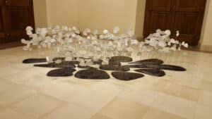 Infine troviamo il dittico visionario di Carlo Michele Schirinzi (Sindoni di femmine d’angelo in caduta, 2025) e la scultura in acido polilattico di Federica Claudia Soldani (Death, 2022), che indaga fragilità e resilienza.