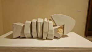 La materia diventa narrazione nelle opere di Giuseppe Ciracì (Tra le mani custodiva le stelle, 2021) e nella terracotta aromatica di Paolo De Santoli (ErmaBiFrontE, 2025).