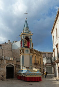 E’ in serata, portata in processione sin 1851, seguito da bande folcloristiche locali (Turi da sempre è la custode delle tradioni bandistiche n.d.r.), che il Carro Trionfale è portato dai fedeli attraverso le vie della città.