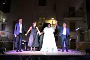 Sul palco anche due giovani promesse, allievi del baritono barese: Joscelyne Kanynda (soprano) e Giuseppe Settanni (tenore).