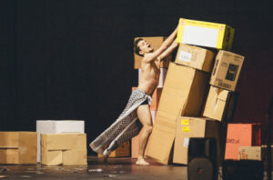 Radicato in un’estetica minimalista e movimenti ispirati alla gravità l’opera enfatizza la vulnerabilità e la forza del corpo queer proponendo una drammaturgia visivamente e fisicamente intensa. (